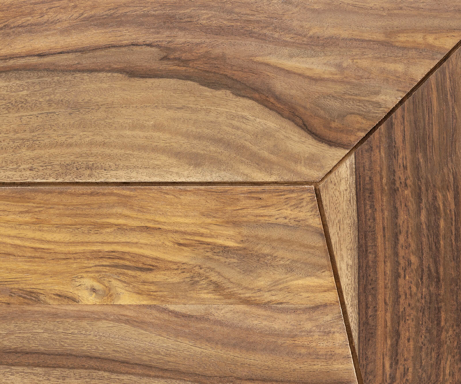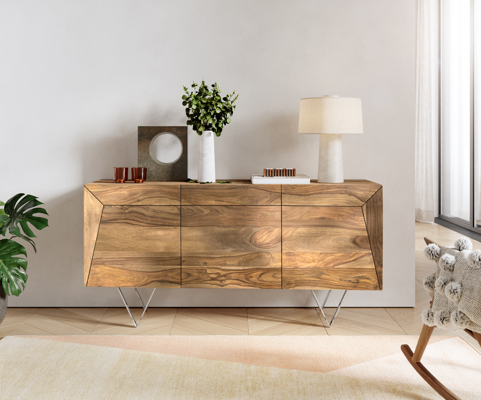 Az elegáns Design-komód Wyatt gondos kézműves munkával készül masszív sheesham fából. A komód olajozott felületei páratlanul szép erezetet és változatos színárnyalatokat mutatnak. A tömörfa komód figyelemfelkeltő darabként jelenik meg különleges kialakítású előlapjával. A részletekbe menően kiváló kézi kidolgozás varázslatos műalkotássá teszi az előlapot, természetes hátteret biztosítva.
