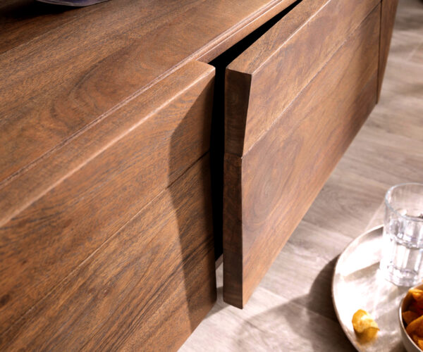 Design TV szekrény Wyatt 175 cm akác barna 2 ajtós 1 billenő ajtós