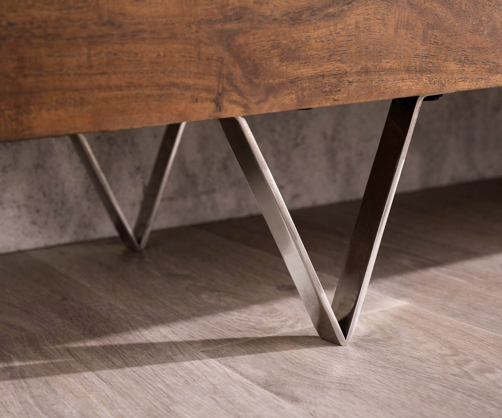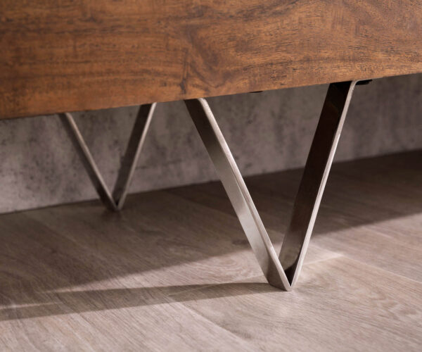 Az igényes kézműves munkával készült Wyatt elegáns TV szekrény kiváló minőségű akácfából készül. Ez a TV asztalként tervezett bútor rozsdamentes acélból készült finom lábakon áll, és természetes felületkezeléssel rendelkezik. Ennek megfelelően a TV szekrény egyedi színátmenetekkel tűnik ki, amelyek lélegzetelállítóan változatos erezetet mutatnak. Letisztult, egyenes vonalvezetésű designjának köszönhetően a TV bútor bőséges tárolóhelyet kínál. A praktikus TV asztal azonban elsősorban az előlapja miatt válik igazán figyelemfelkeltővé.