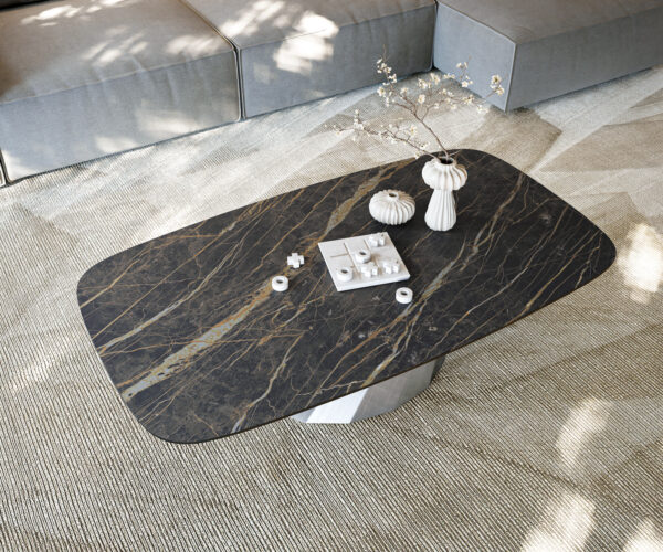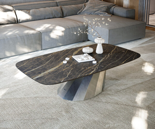 Az új álomasztalod – az Edge dohányzóasztal Laminam® Noir Desir barna kerámiából, hajóformában