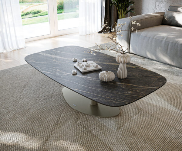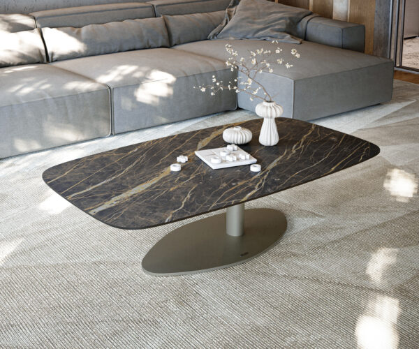 Az új álomasztalod – az Edge dohányzóasztal Laminam® Noir Desir barna kerámiából, hajóformában