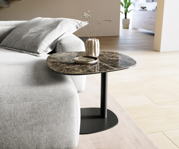 Az Edge Emperador Extra dohányzóasztallal egyedülálló design-t varázsolhatsz otthonodba. Komplex és lenyűgöző mélységével az elegáns dohányzóasztallap a márvány szépségét és időtlenségét különleges hitelességgel közvetíti. Mintha nagyító alatt néznénk, a csodálatos, meleg barna árnyalatokból és finom erezetből álló színátmenetek kiemelkednek, és egy sajátos, szinte hipnotikus komplexitást fejlesztenek ki. Mesterien, egyetlen darabból készült a híres olasz Laminam® kerámiából, így a nemes márványhatás minden részletében hibátlanul érvényesül, megszakítások vagy zavaró fugák nélkül. Egy gondosan kivitelezett magasfényű polírozás és a feltűnő hajóformájú kialakítás teszi teljessé a kifinomult designt, amely felejthetetlen hangulatot kölcsönöz a nappalidnak.