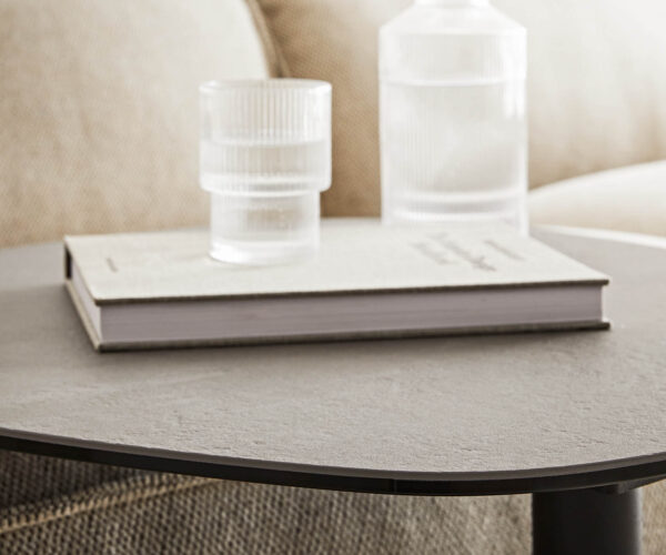 Az Elenya dohányzóasztal más. Izgalmasan más. Ez a dohányzóasztal nemcsak különösen nagy lábteret biztosít rendkívüli kialakításának köszönhetően, hanem minden tekintetet az egyedi asztallapra irányít. Nemcsak a szokatlan forma teszi különlegessé, hanem elsősorban a magas minőségű kerámia, amiből készült. Ez a durva betonhatású, matt, strukturált felületével és kiváló ápolhatóságával lenyűgöz, így a tisztítása gyerekjáték.