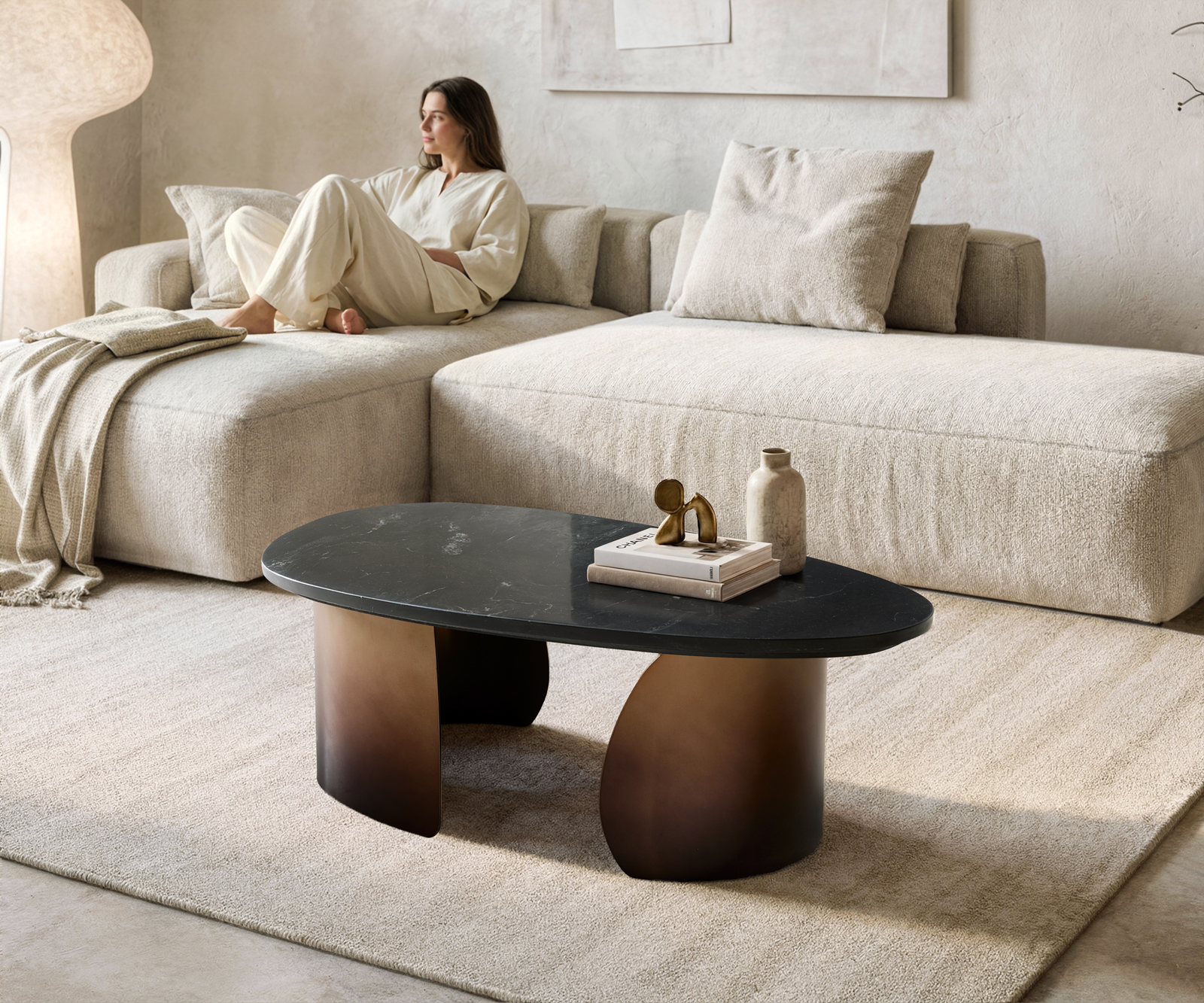 A Marvello egy dohányzóasztal, amely a luxust nem hangosan mutatja meg – hanem érezhetővé teszi. A mély fekete színű, organikus formájú valódi márvány asztallapot ezüst erezet szövi át, amely olyan, mint egy természetes műalkotás, nyugalmat és kifinomultságot sugároz. Ehhez társul az arany színű fém láb Fusion Finish felülettel: egy finom átmenet a feketébe, amely mélységet ad a designnak, és lenyűgöző módon ragyogja be a fényt.