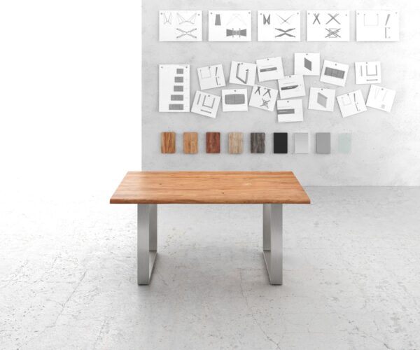 A vékony rozsdamentes acélból készült kufengestell mellett helyesen dönt, ha az Edge kollekció egyik legnépszerűbb asztalát választja. A kiválóan megmunkált, ezüstszínű láb tökéletesen illik bármilyen berendezési stílushoz, és az asztalnak rusztikus természetességből és vonzó eleganciából álló ügyes csavart kölcsönöz.