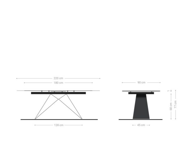 Étkezőasztal Edge 180-220×90 cm kerámia Laminam® Nero Greco antracit V középső láb fekete kihúzható