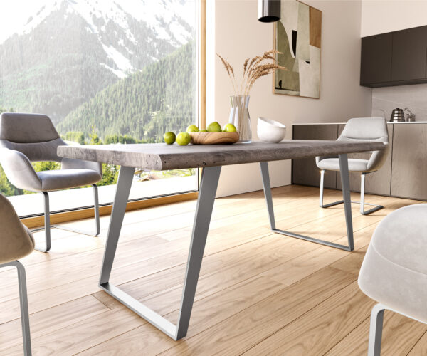 Live-Edge faélekkel platina színben – tökéletes az étkeződhöz