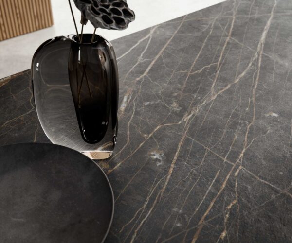 Lélegzetelállítóan szép és könnyen ápolható – az Edge asztal Laminam® Noir Desir barna kerámiával