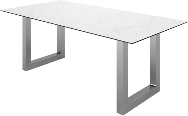 Étkezőasztal Edge 200×100 kerámia Laminam® Statuarietto fehér rozsdamentes acél széles
