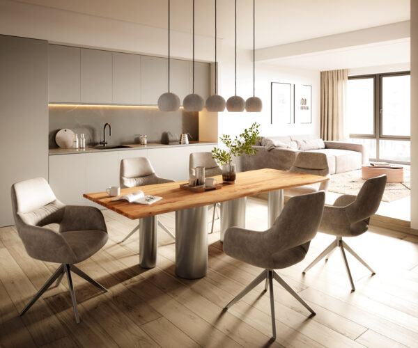 A Live-Edge étkezőasztal lenyűgöz egyedi asztallapjával, amely elegánsan hullámos, természetes élű akácfa különösen masszív és ellenálló anyagából készült. A masszív fa természetes színe gyönyörűen kiemeli minden egyes fa egyedi jellemzőit, és kifinomultan hangsúlyozza az akác finom erezetét. Minden Live-Edge asztal abszolút egyedi darab, ugyanakkor klasszikusan téglalap alakú asztallapjának és természetes színvilágának köszönhetően kiválóan illeszkedik a legkülönbözőbb lakberendezési stílusokhoz, és barátságos, teljesen egyéni hangulatot teremt.