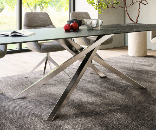 Étkezőasztal Edge 300×100 cm kerámia Laminam® Nero Greco antracit kereszt láb téglalap alakú rozsdamentes acél