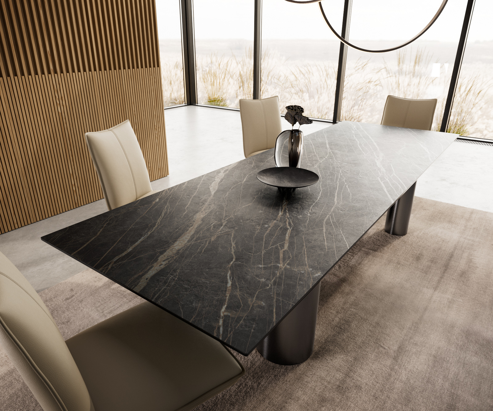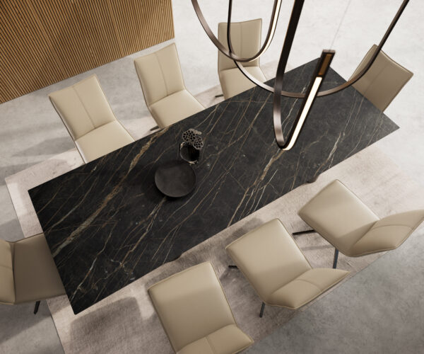 - Az asztallap egy darab folyamatos kerámialapból készül, amely harmonikus egységet alkot, és egyedülállóságát adja.