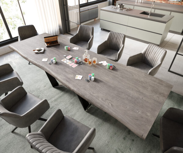 Live-Edge faélekkel platina színben – tökéletes az étkeződhöz