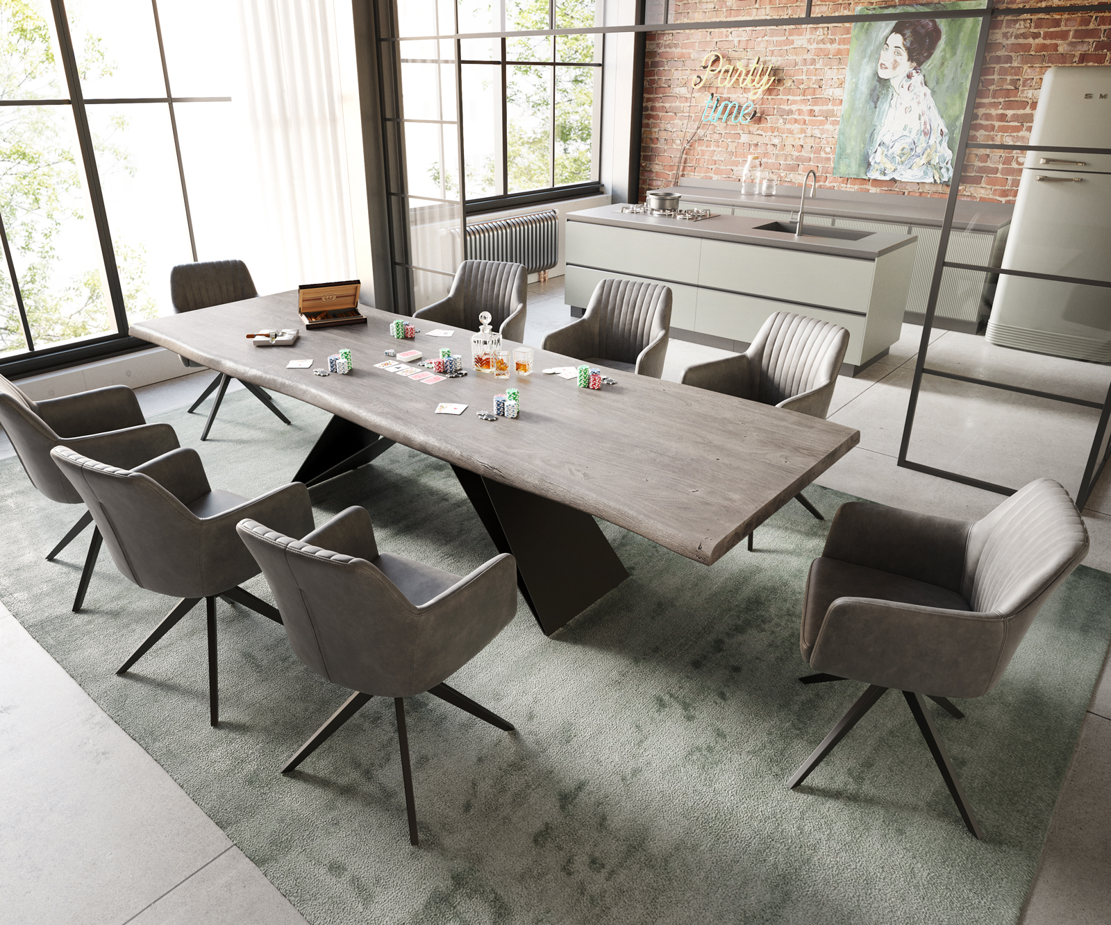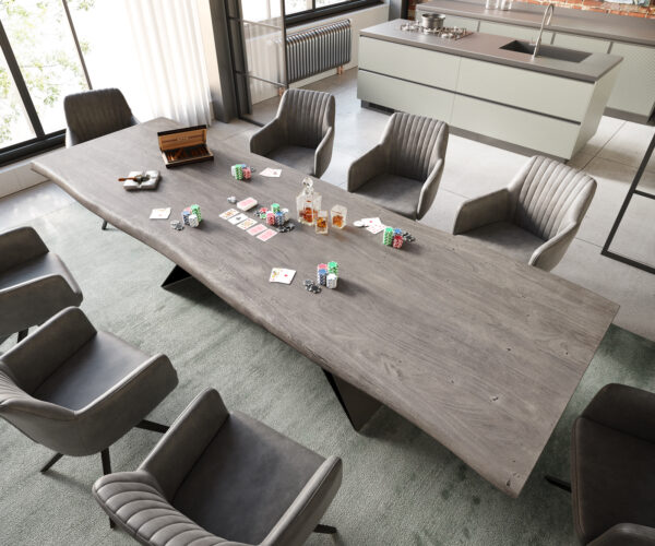 Live-Edge faélekkel platina színben – tökéletes az étkezőhelyiségbe