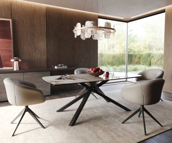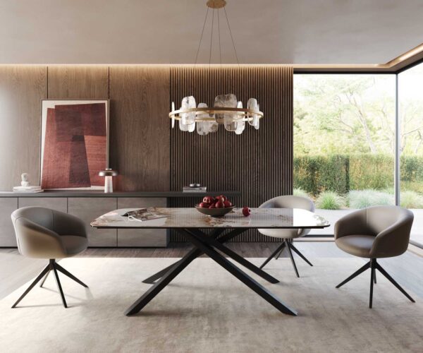 - Az asztallap egy darab kerámialapból készül, egyedi megjelenést biztosítva harmonikus összképben.