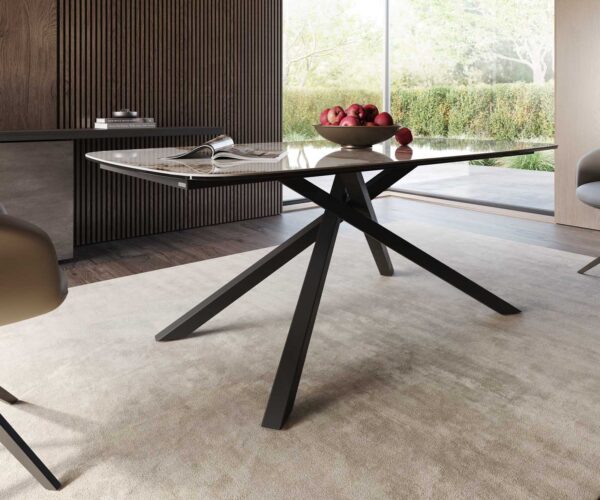 Modern, elegáns, nagyszerű – az Edge étkezőasztal Minas Melange kerámiából hajóformában