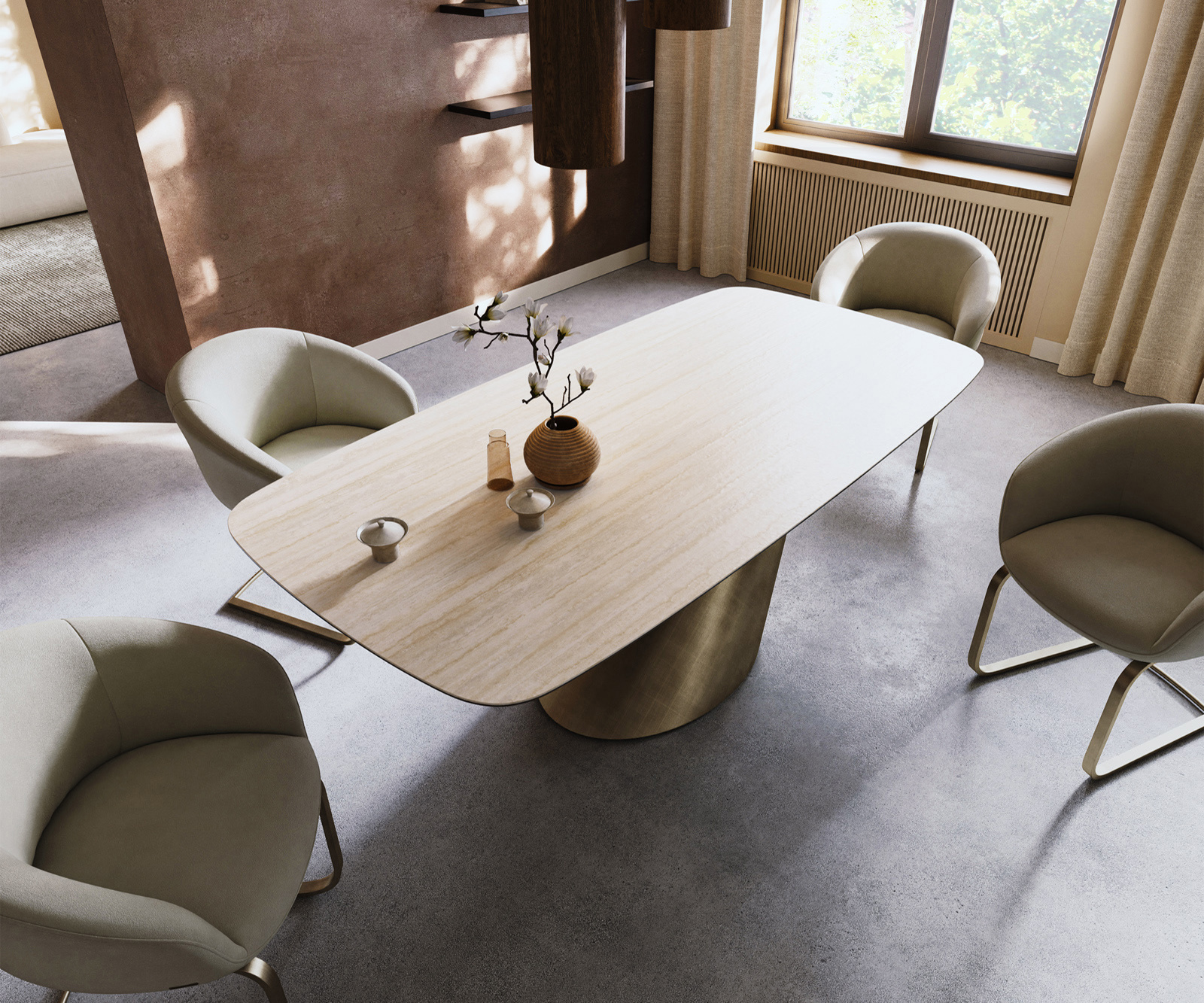 Valódi, olasz Laminam® kerámiából természetes kőhatással – az Edge étkezőasztal hajóformában