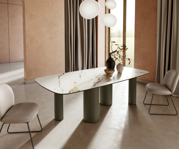 - Az asztallap egy darab folyamatos kerámiából készül, amely harmonikus összképével egyedivé teszi az asztalt.