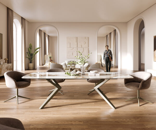 Modern, elegáns, nagyszerű – az Edge étkezőasztal Minas Melange kerámiából hajóformában