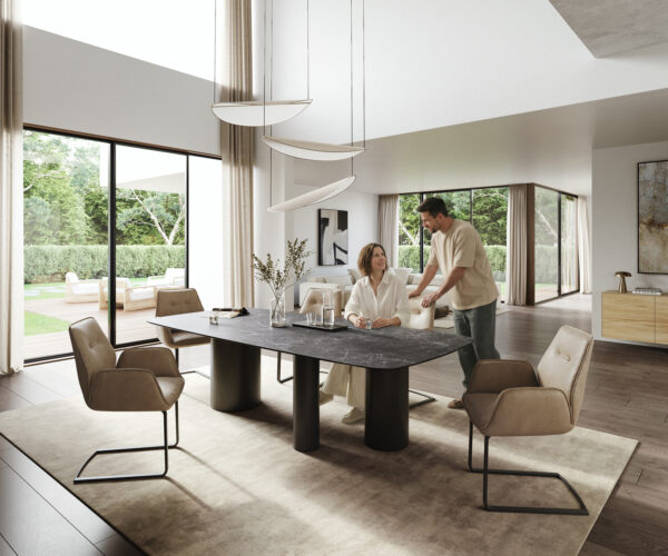 - Az asztallap egy darab folyamatos kerámialapból készül, egy harmonikus összképet alkotva egyedülállóságával.