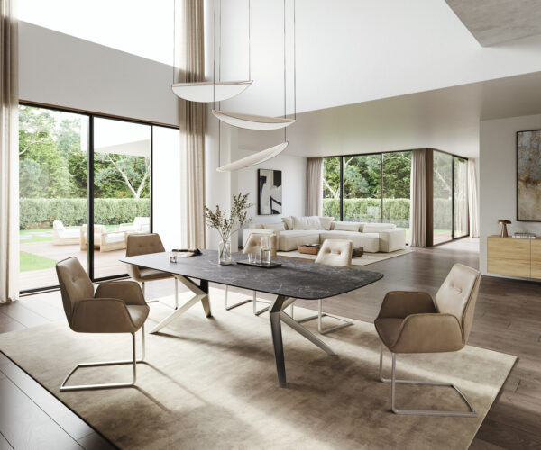 - Az asztallap egy darab folyamatos kerámialapból készül, amely harmonikus összképpel egyediséget kap.