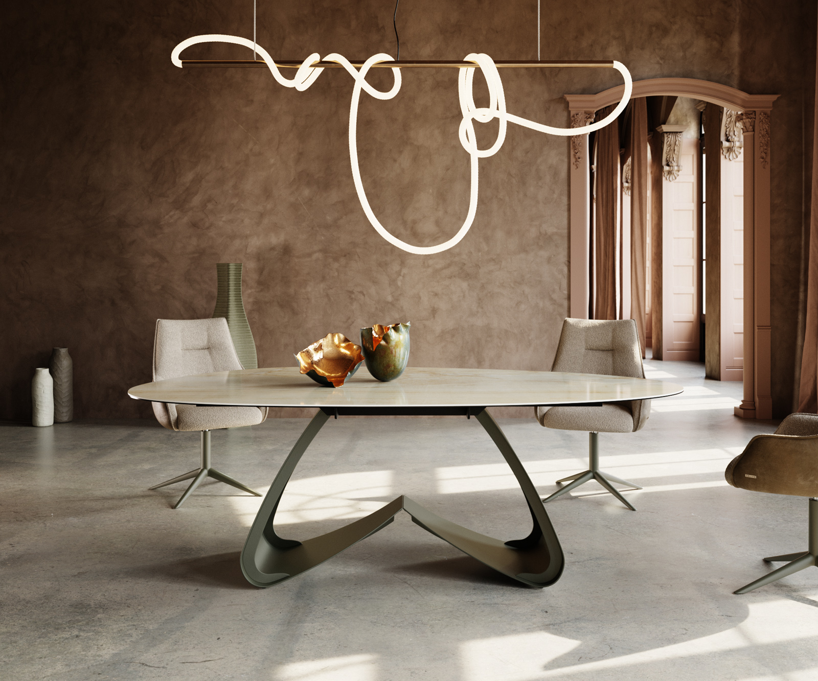 • Az asztallap egy darab folyamatos kerámialapból készül, amely egy harmonikus, egyedi összképet alkot.