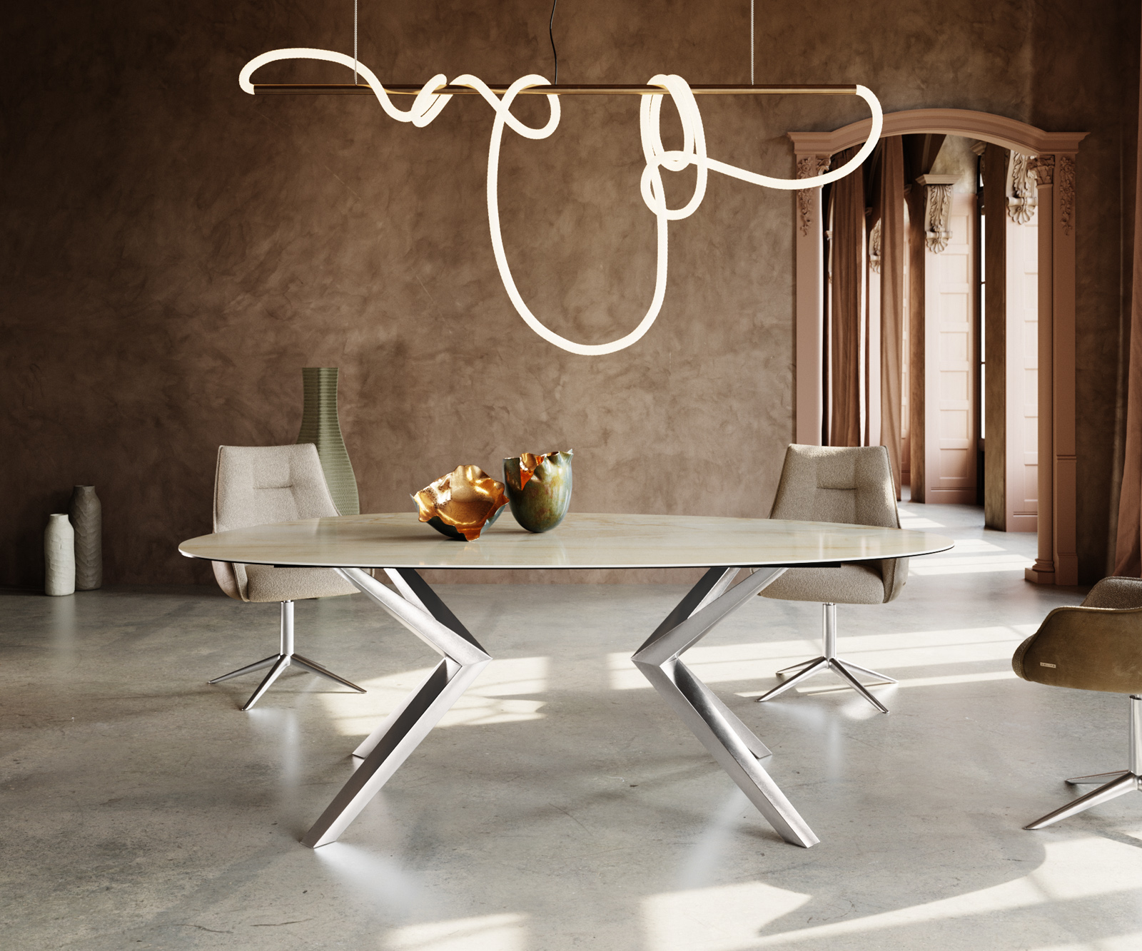 • Az asztallap egyetlen, folyamatos kerámialapból készül, amely egy harmonikus, egyedi megjelenést biztosít.