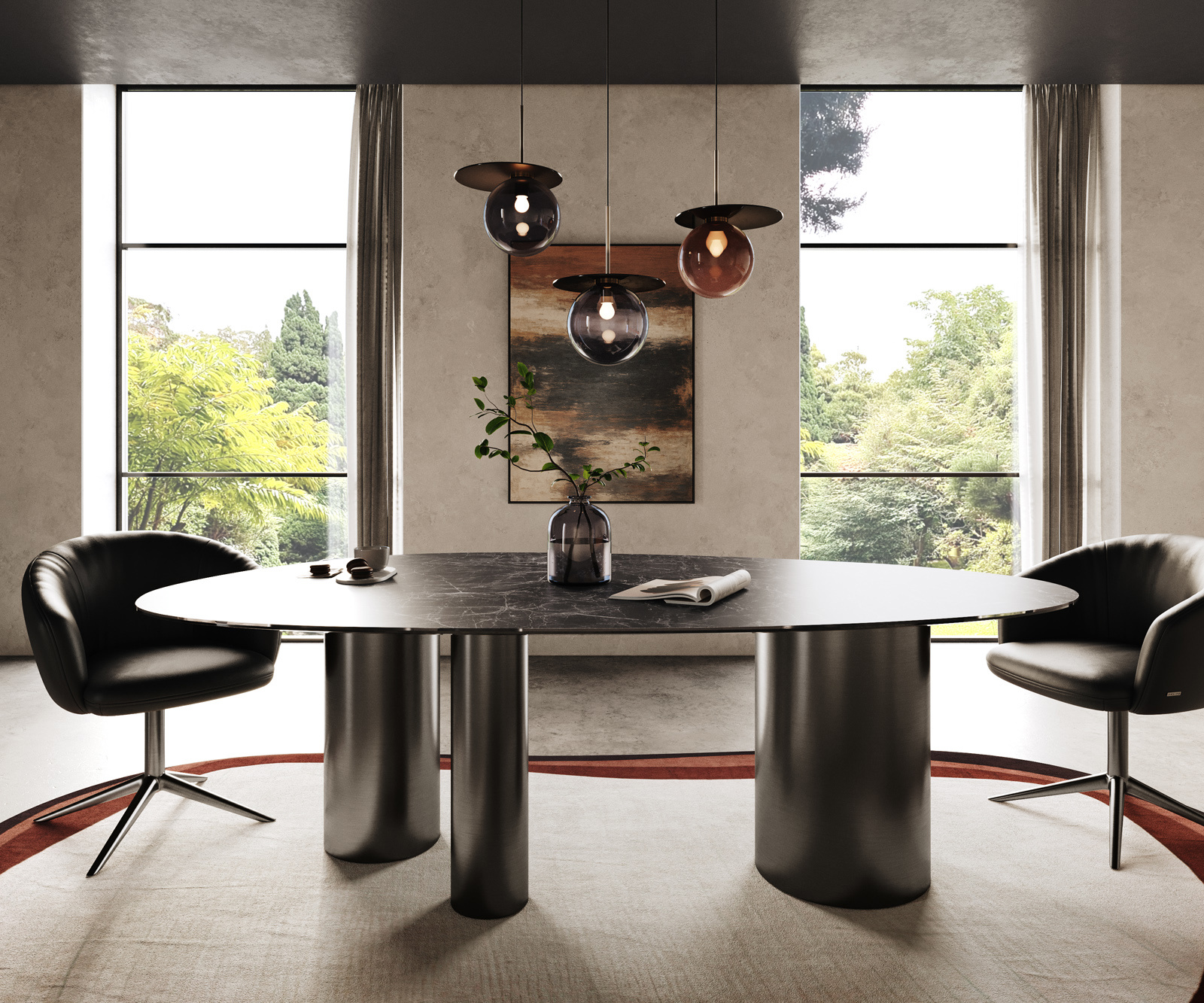 Visszautasíthatatlanul elegáns – az Edge asztal ovális Laminam® kerámia asztallappal Nero Greco szürkében