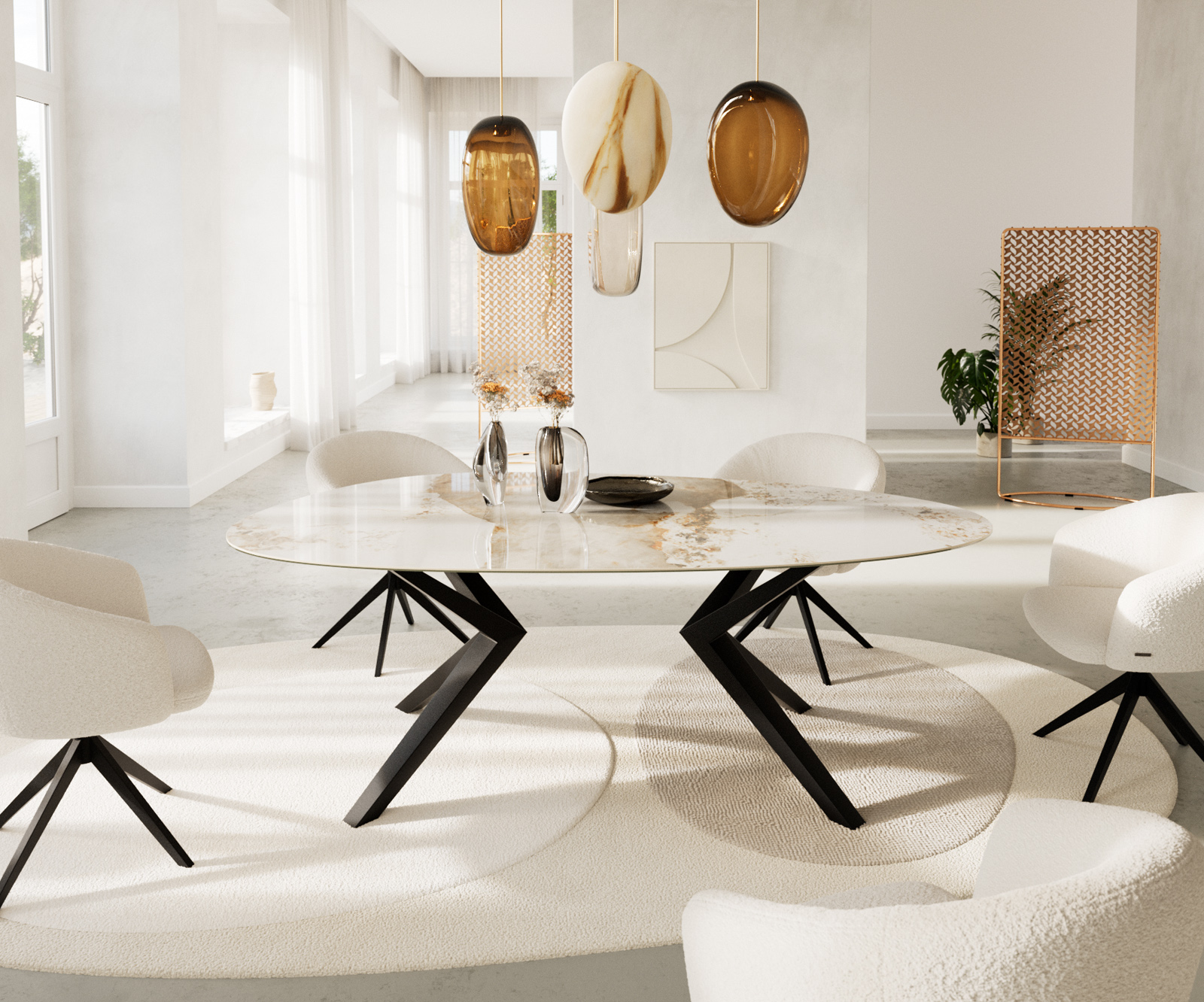Olyan elegáns, olyan egyedi – az Edge kerámia asztal Minas Melange fehér-bézs színben, ovális asztallappal