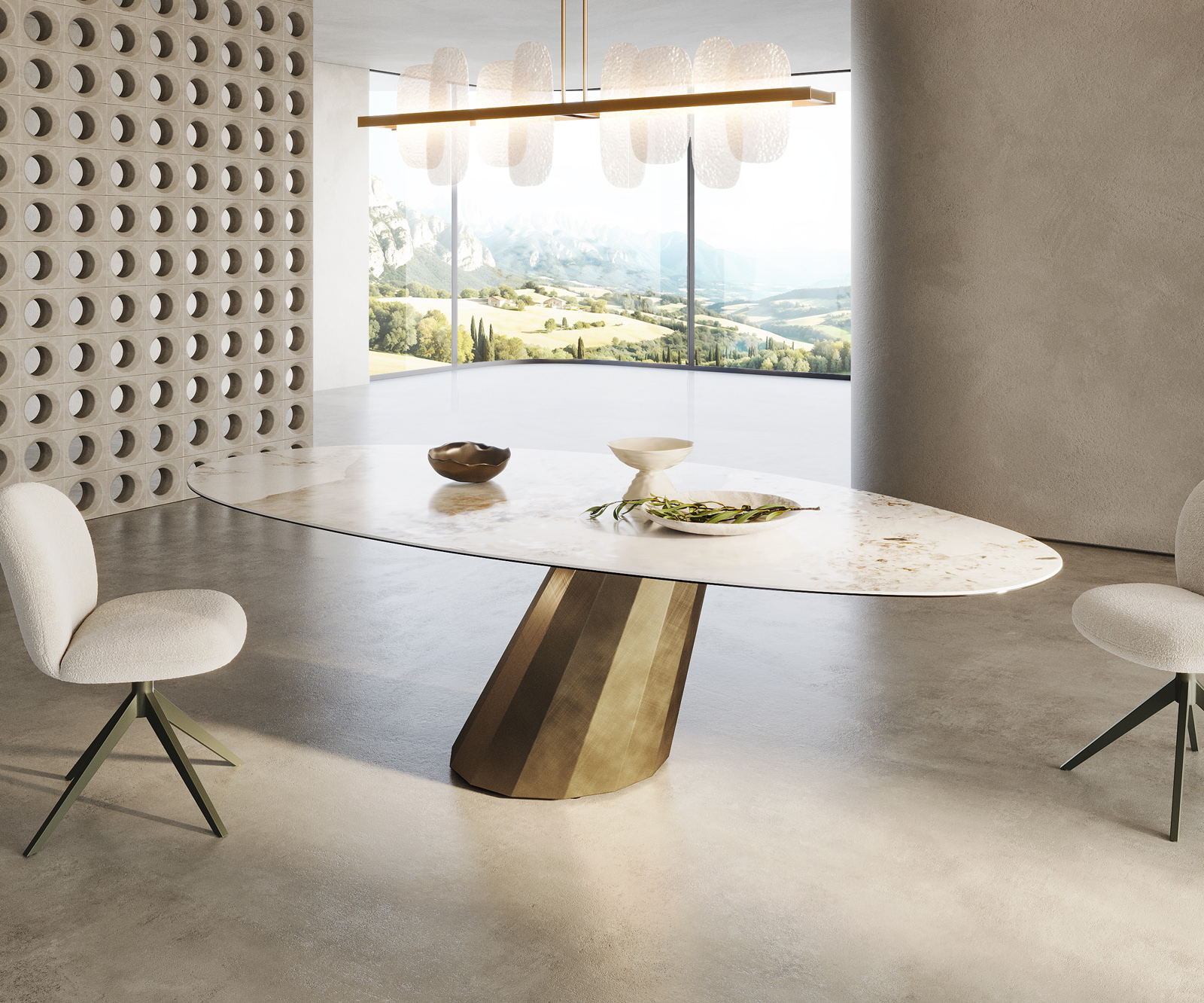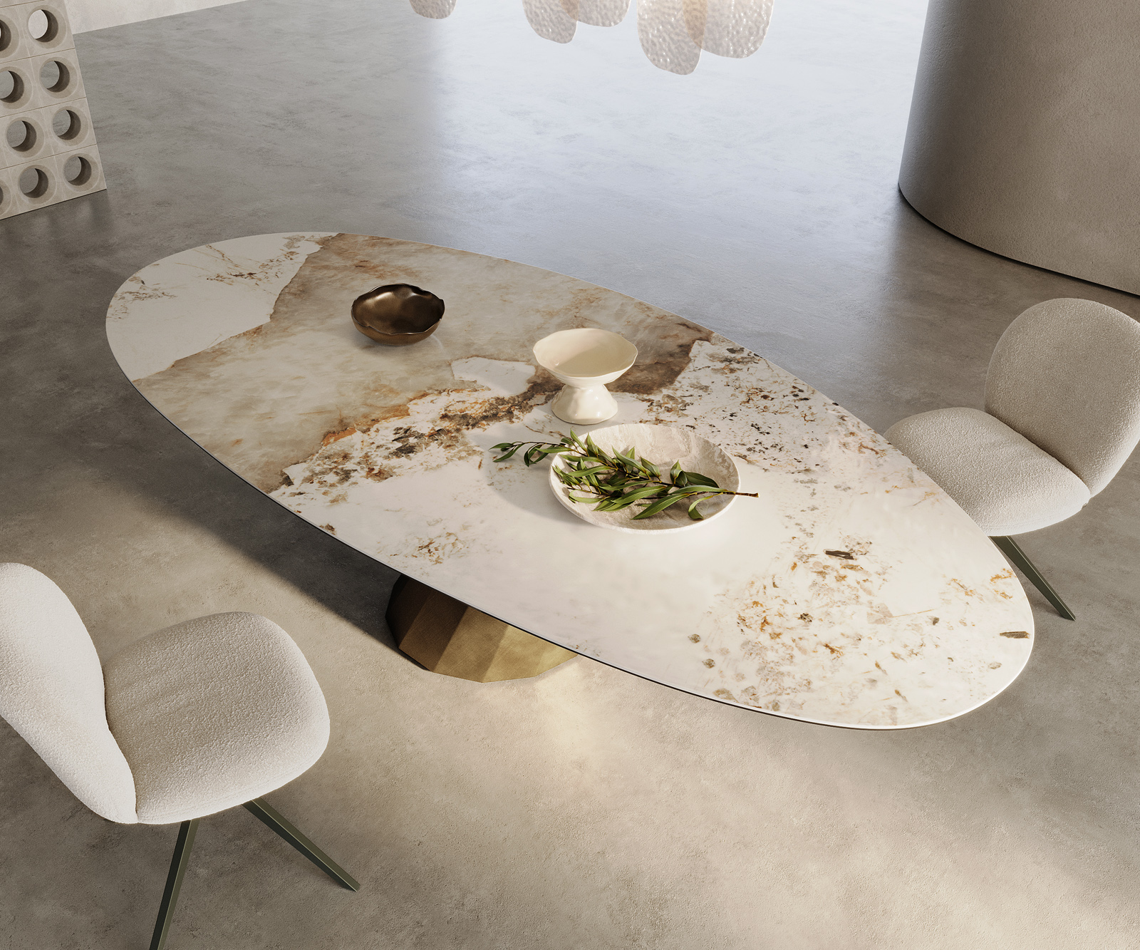 Olyan elegáns, olyan egyedi – az Edge kerámia asztal Minas Melange fehér-bézs színben, ovális asztallappal