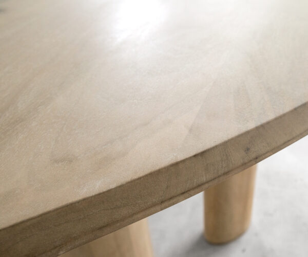 A válogatott masszív fa, amelyből az asztal készült, praktikus tulajdonságaival nyűgöz le. Ez a bútordarab strapabíró és tartós. Emellett a mango fa egyedi erezete természetes kisugárzással gazdagítja a dizájnt. A világos White Wash megjelenésnek köszönhetően a modern, minimalista étkezőasztal könnyedén illeszthető különböző berendezési stílusokhoz.