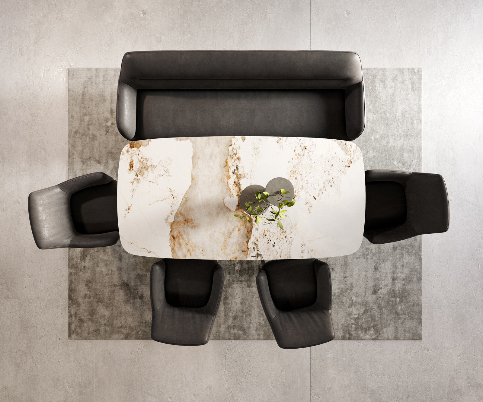 A lapos vékony láb modern, könnyed megjelenést kölcsönöz az étkezőpadnak. A ferde, finoman lekerekített vonalak elegáns, nyitott sziluettet alkotnak. A folyamatos forma harmonikus egyensúlyt teremt a stabilitás és a design között.