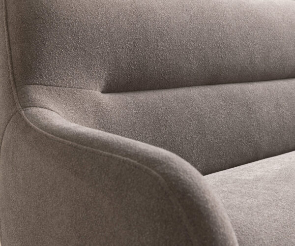 A meleg taupe színű finom strukturált szövet kellemes felületével és harmonikus színvilágával tűnik ki. Ez az anyag természetes eleganciát kölcsönöz a padnak, és otthonos légkört teremt, amely tökéletesen illeszkedik különféle berendezési stílusokhoz.
