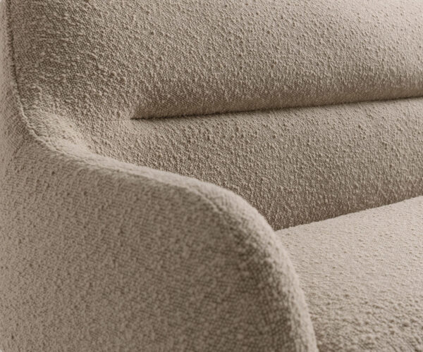 A nemes bouclé anyag lágy sötét bézs (schlamm) árnyalatban tetszetős, jellegzetes struktúrával és puha felülettel. A harmonikus színvilágnak köszönhetően az anyag könnyedén illeszkedik különböző lakberendezési koncepciókba, és kiemeli a padrendszer modern, otthonos jellegét.