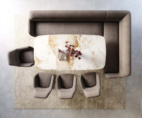 A lapos vékony láb modern, könnyed megjelenést kölcsönöz az étkezőpadnak. A ferde, finoman lekerekített vonalak elegáns, nyitott sziluettet alkotnak. Az összefüggő forma harmonikus egyensúlyt teremt a stabilitás és a dizájn között.
