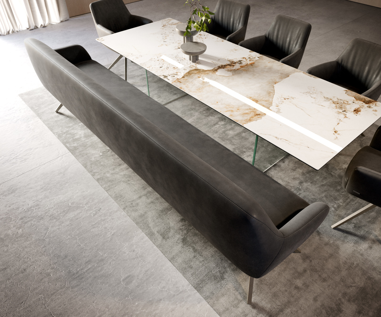 Flex étkezőszékeink és Edge étkezőasztalaink tökéletesen követik a pad formanyelvét: a formák, vonalvezetés és lábak harmonikusan illeszkednek egymáshoz. A 3 méter hosszú Edge étkezőasztalok optimálisan ehhez igazodnak. Ehhez ajánljuk a Flex étkezőszékeket Yago, Zoa, Pejo, Heira vagy Xana modellek közül, amelyeket kérésre azonos kárpittal választhat. Így egy stílusos, karakteres étkezőhely jön létre – tökéletes összhangban és kifinomultsággal.