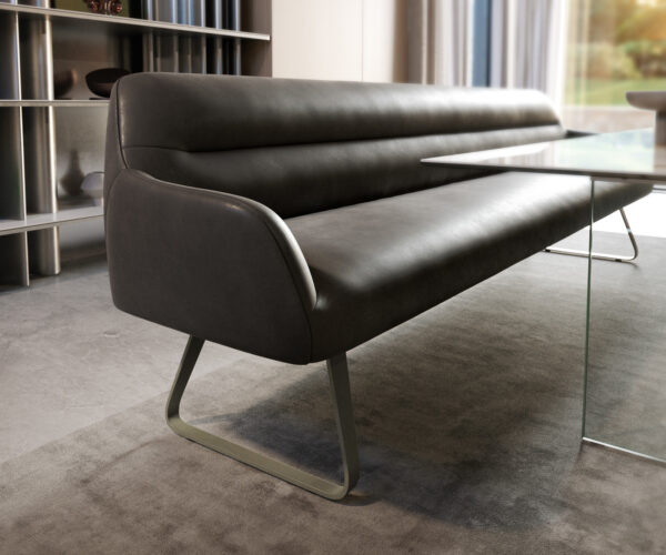 A lapos vékony láb modern, könnyed megjelenést kölcsönöz az étkezőpadnak. A ferde, finoman lekerekített vonalak elegáns, nyitott sziluettet alkotnak. A folyamatos forma harmonikus egyensúlyt teremt a stabilitás és a design között.
