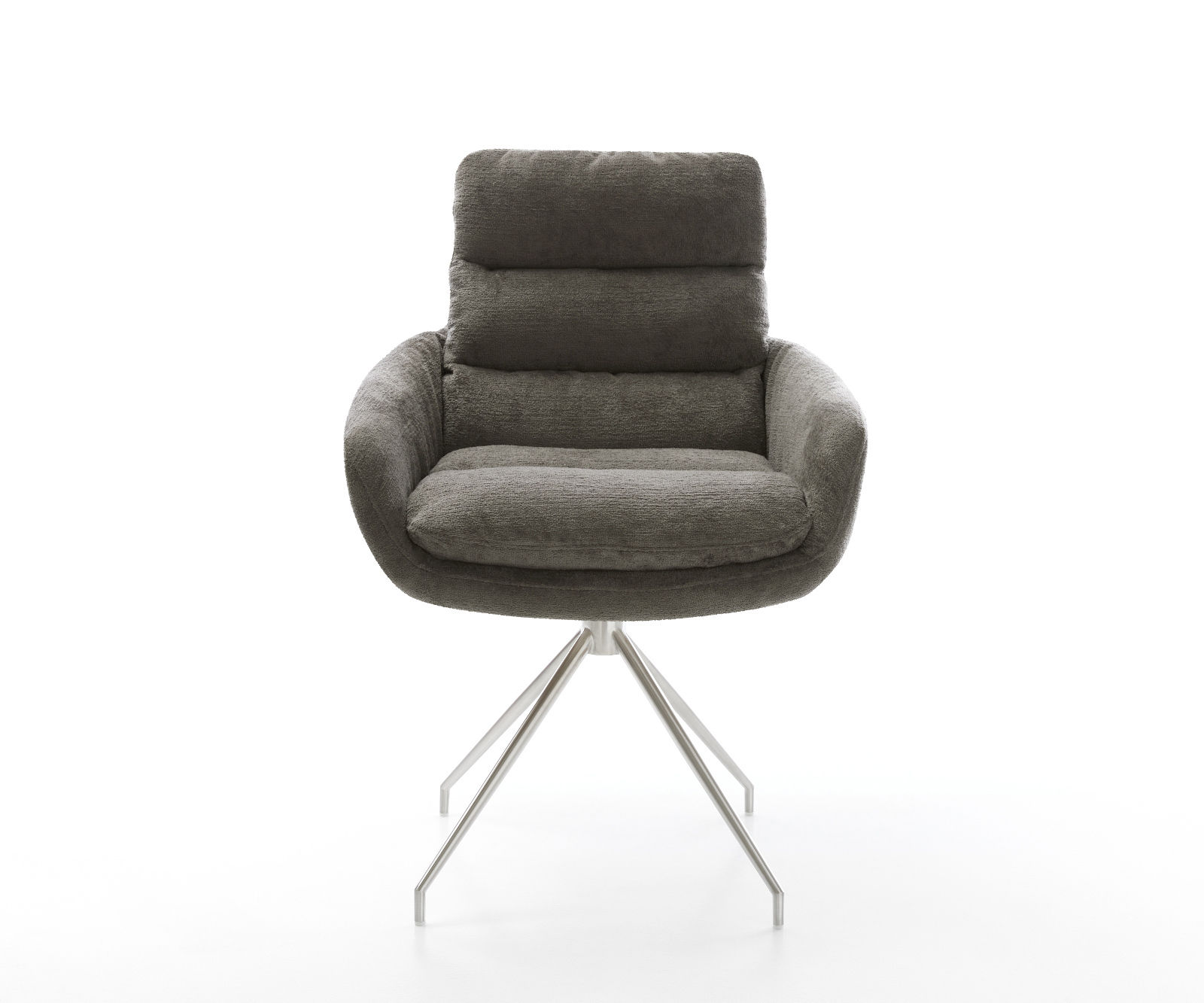 Étkezőszék Abelia-Flex karfás bouclé puha sötét bézs kereszt láb kúpos rozsdamentes acél