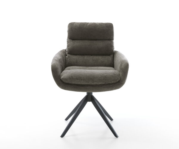 Étkezőszék Abelia-Flex karfás bouclé puha sötét bézs kereszt láb széles fekete 360° forgatható billenő funkció