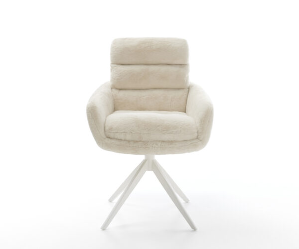 Étkezőszék Abelia-Flex karfás plüss krémfehér kereszt láb széles fehér 360° forgatható billenő
