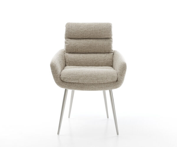 Az Abelia étkezőszék integrált, kellemesen párnázott karfáival különösen elegáns és méltóságteljes megjelenést kölcsönöz. A széles ülőfelület laza párnahatású kialakítása nemcsak rendkívül kényelmessé teszi a széket, hanem stílusos látványelemként is szolgál az ebédlőjében.