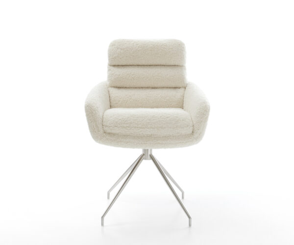 Étkezőszék Abelia-Flex karfás teddy szövet bézs kúpos rozsdamentes acél kereszt lábbal