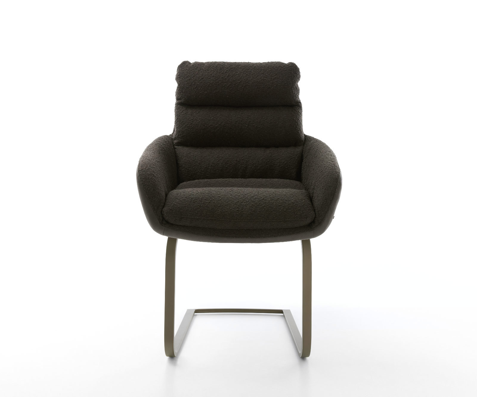 Az Abelia a beépített és kellemesen párnázott karfáival különösen elegáns és fenséges megjelenést kölcsönöz. A széles ülőfelület laza párnahatású kialakítása nemcsak rendkívül kényelmessé teszi a széket, hanem stílusos látványelemként is kiemelkedik az étkeződből.