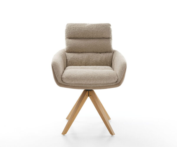 A feltűnő kereszt lábazat négy szögletes lábbal klasszikus megjelenést ötvöz természetes könnyedséggel. Akár 180 fokban forgatható, és praktikus visszaforgató funkcióval rendelkezik, amely kellemesebbé teszi a társalgást az étkezőasztalnál.