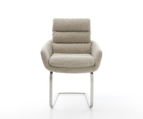 Étkezőszék Abelia-Flex kárpitozott karfás szövött szövet puha bézs konzolos lapos rozsdamentes acél