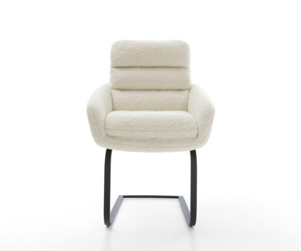 Étkezőszék Abelia-Flex kárpitozott karfás teddy szövet bézs lapos fekete konzolos láb