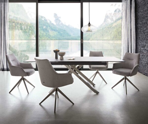 A széles keresztláb 360 fokban forgatható, biztos tartást és modern megjelenést biztosít.