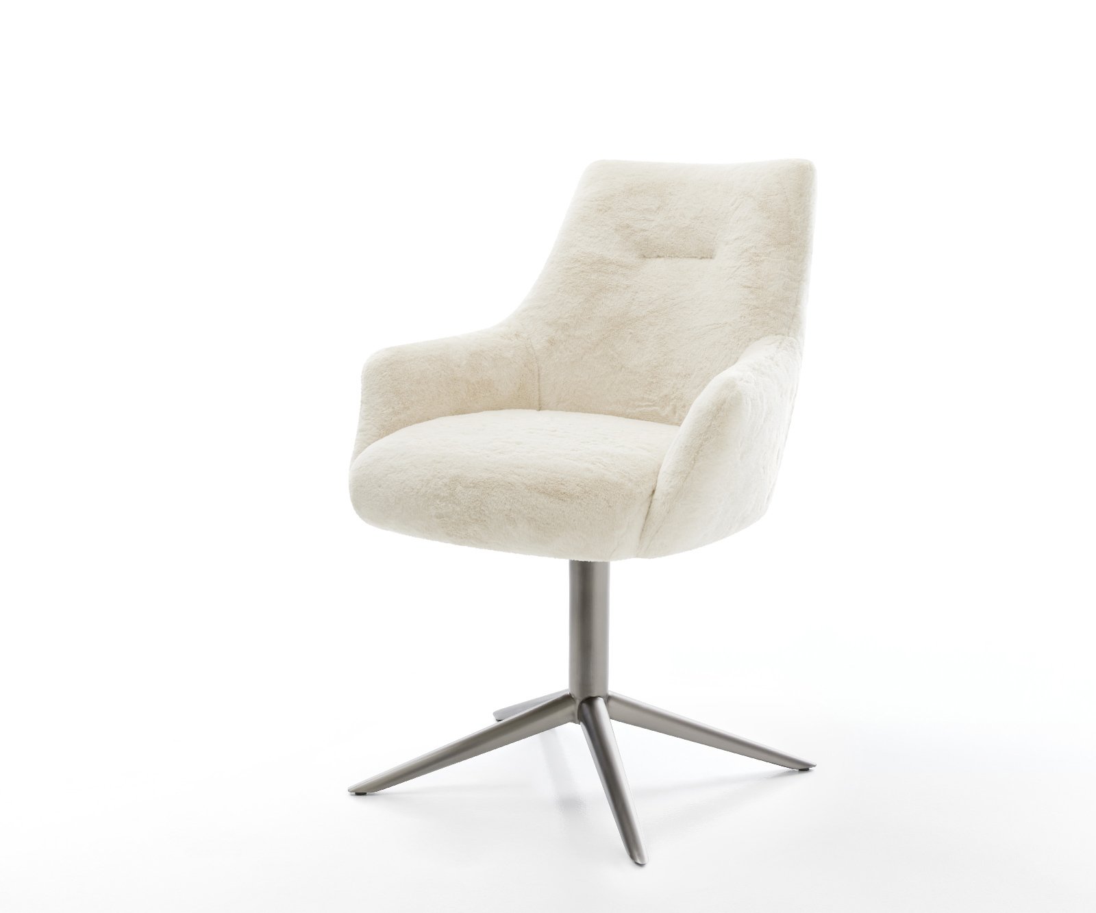 Étkezőszék Alja-Flex karfás plüss krémfehér kereszt láb grafit 360° forgatható billenő zsákrugós