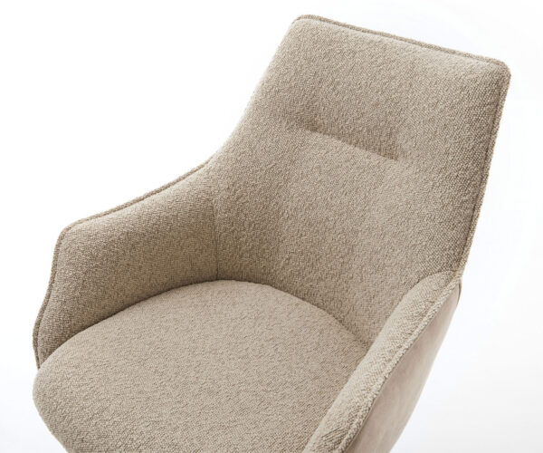 Egy izgalmas anyagkombináció, melynek külső része mikroszálas, belső oldala pedig bouclé anyagból készült, igazi must-have darabbá teszi az étkezőszéket minden ízlésesen berendezett étkezőben. A két anyag használata vizuálisan különösen vonzó, akár egyedileg, akár ülőgarnitúraként alkalmazva.