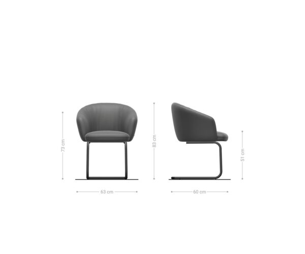 A kerek lábazat klasszikus, hintamechanizmusos freischwinger formában készült. Ez nemcsak különösen elegánssá teszi, hanem könnyed hintamechanizmusának köszönhetően egészséges testtartást és kényelmes ülést biztosít.